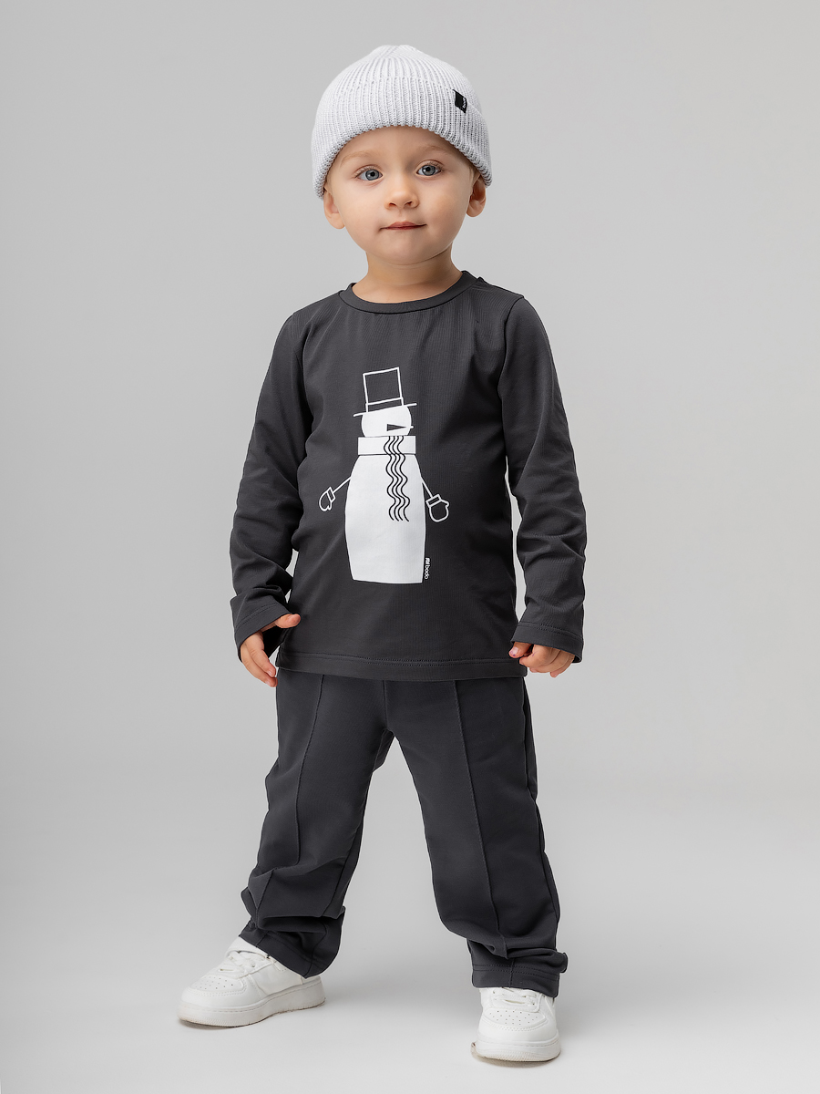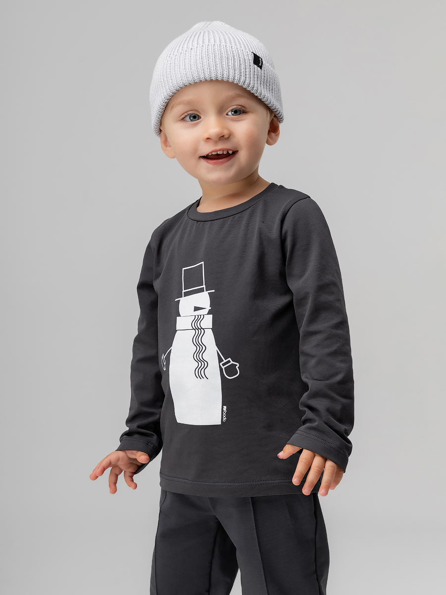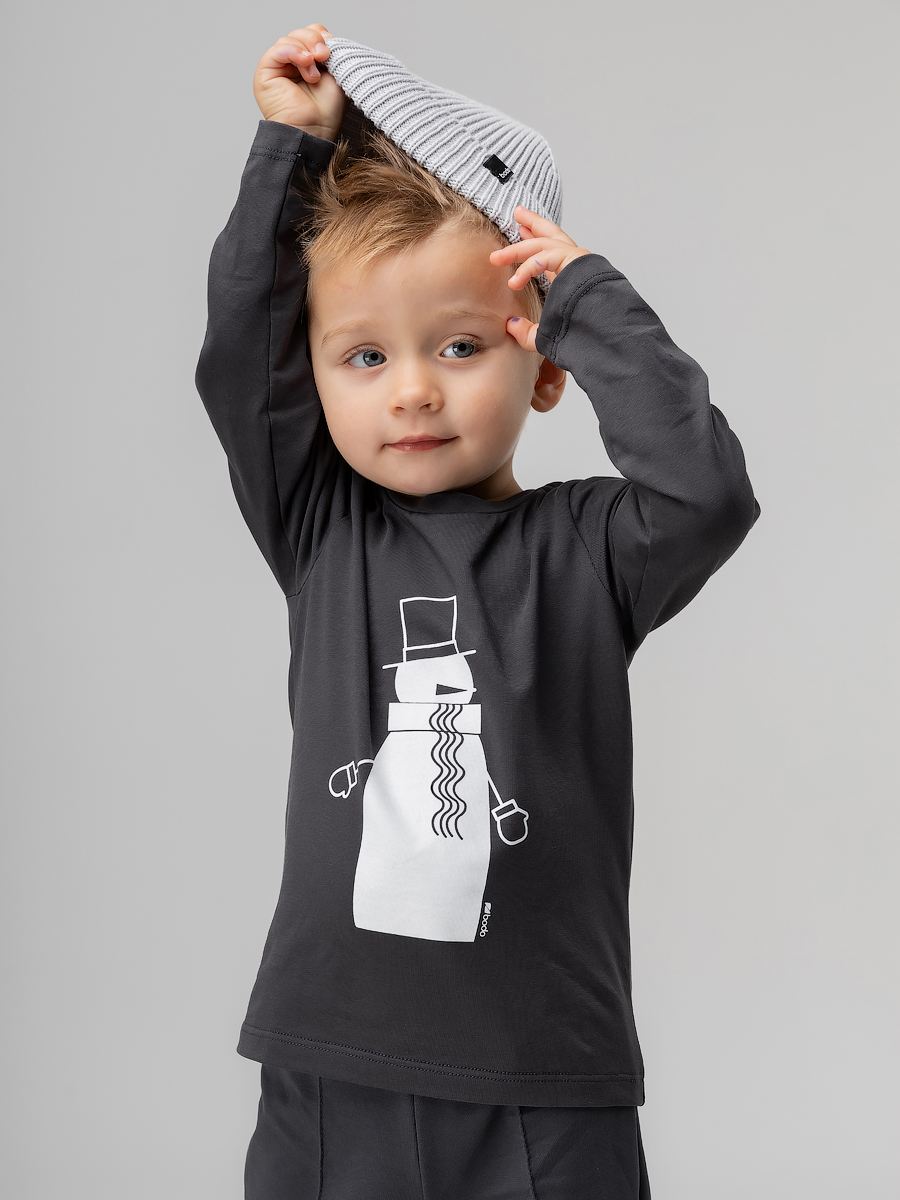 Футболка для детей ясельного возраста. Футболка прямого силуэта, с втачными длинными рукавами. Горловина округлой формы. На полочке располагается принт.