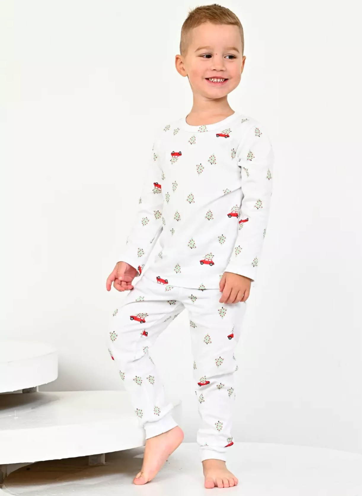Пижама детская "Машинка с елкой", белый
