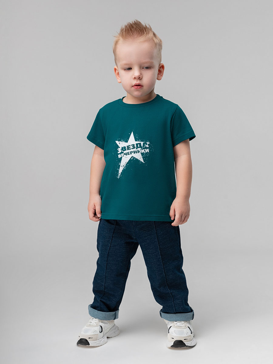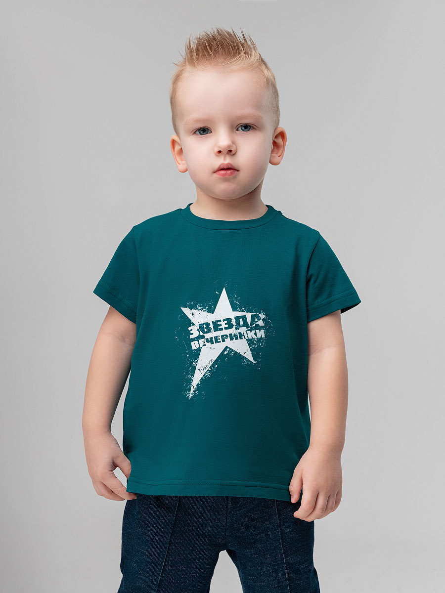 Футболка для детей ясельного возраста. Футболка прямого силуэта, с втачными коротким рукавами. Горловина округлой формы.На полочке располагается принт.
