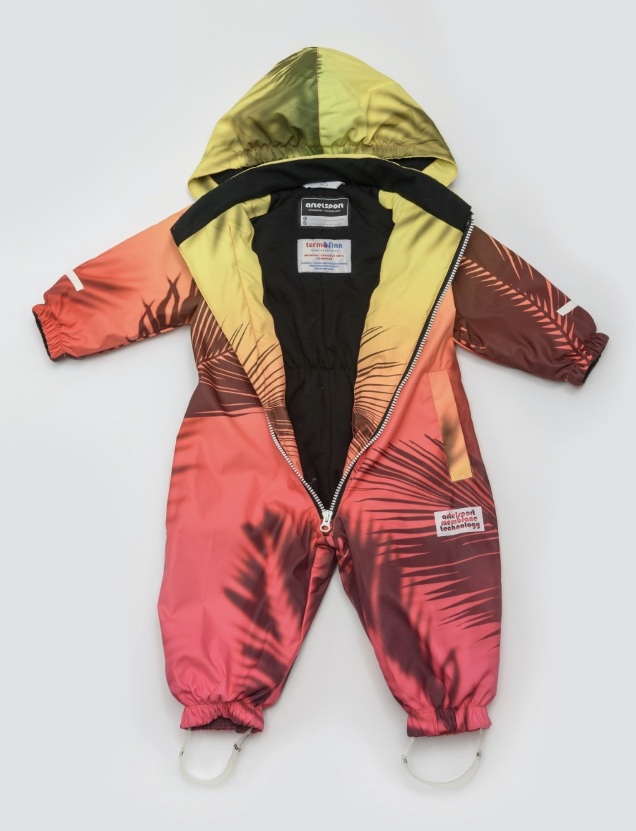 Яркий, модный демисезонный комбинезон с авторским принтом выполнен из мембранной ткани 7000/7000, подойдет как для девочки, так и для мальчика. Данный комбинезон станет идеальным вариантом на весну и осень. Комбинезон прямого кроя с резинкой во внутренней части изделия, которая дает возможность создания приталенного силуэта. Втачной капюшон, обрамленный резинкой по краю, для лучшего прилегания по голове ребенка и защиты от ветра. Модель оснащена светоотражающими элементами на рукавах и штанинах для пассивной защиты ребенка. Ветрозащитный внутренний клапан. Низ рукавов на резинке, обрамлен мягкой подкладкой для комфортного соприкосновения с кожей. Карман на кнопке. Подкладка выполнена из интерлока (хлопок), а зона горловины обработана микрофлисом. Штрипки в комплекте. Утеплитель - TermoFinn 80 гр. Рекомендованный температурный режим от +10 до -5 (необходимо учитывать нижние слои одежды, степень активности ребенка, климатические условия региона).