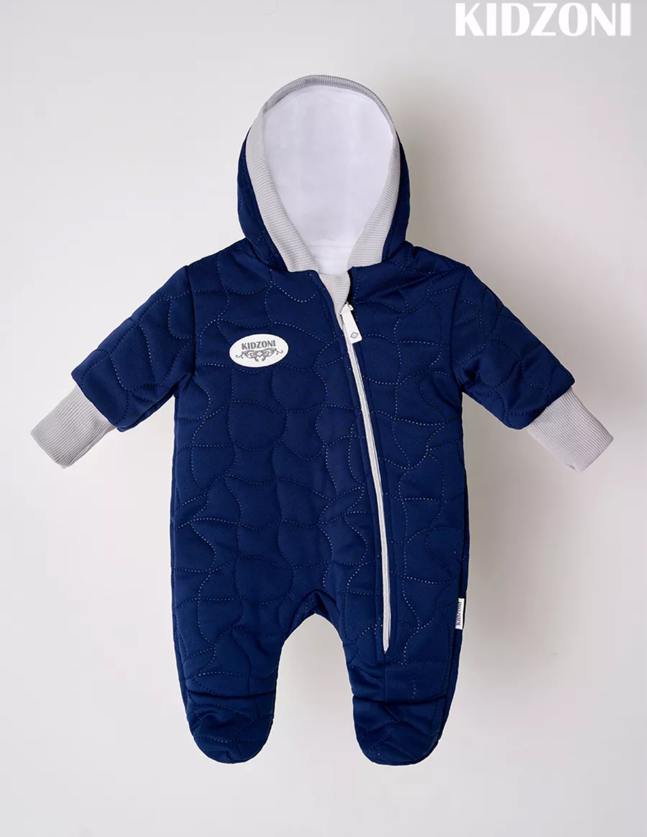 В размерах 62 и 68 ножки закрыты, расположении молнии по диагонали.